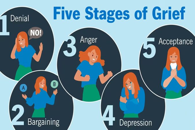 روانشناسی سالها پیش برای توضیح روند کنار اومدن با غم، الگویی به نام «پنج مرحلهی سوگواری» تعریف کرد: انکار، خشم، چانهزنی، افسردگی و پذیرش.