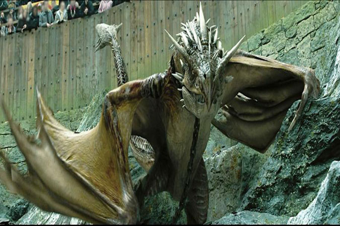 تو نسخهی سینمایی جام آتش، ماجرا خیلی هیجانانگیز و هالیوودی روایت میشه. قهرمانها قرعه میکشن تا اژدهاشون مشخص بشه و بدشانسیِ مطلق نصیب هری میشه: Hungarian Horntail، بدقلقترین و خطرناکترین اژدها.
